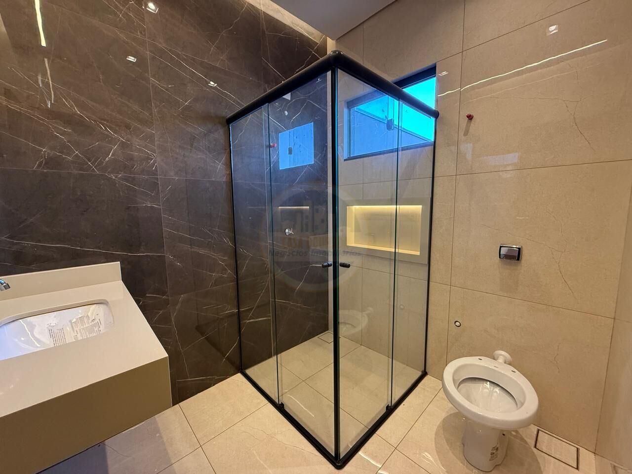 A área externa conta com vaga para 2 carros, muro em vidro temperado e portão de elevação automatizado, unindo segurança e estética moderna. A casa ainda possui uma lavanderia privativa com estendal reservado, garantindo praticidade e organização no dia a dia.